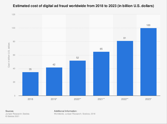 In industries such as retail, legal and financial services, the average fraud rate worldwide was 14-20%. Interestingly the Covid-19 pandemic caused a spike in click fraud during the initial lockdown with click fraud increasing by 21% in April and May 2019.